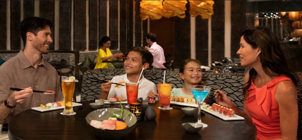 Comidas y bebidas Tus invitados podrán saborear múltiples opciones gastronómicas Todo Incluido, con platillos internacionales exquisitos de la comida mexicana, latinoamericana, italiana, panasiática, francesa, india, de Medio Oriente, brasileña y mucho más. También podrán disfrutar de cerveza, vino y cocteles ilimitados en nuestros múltiples bares, desde sofisticados lugares temáticos en el lobby hasta bares relajados junto a la piscina. Además, ofrecemos espectáculos nocturnos en vivo y clubes nocturnos para los amantes de la fiesta hasta bien entrada la noche (o incluso a la mañana siguiente).
